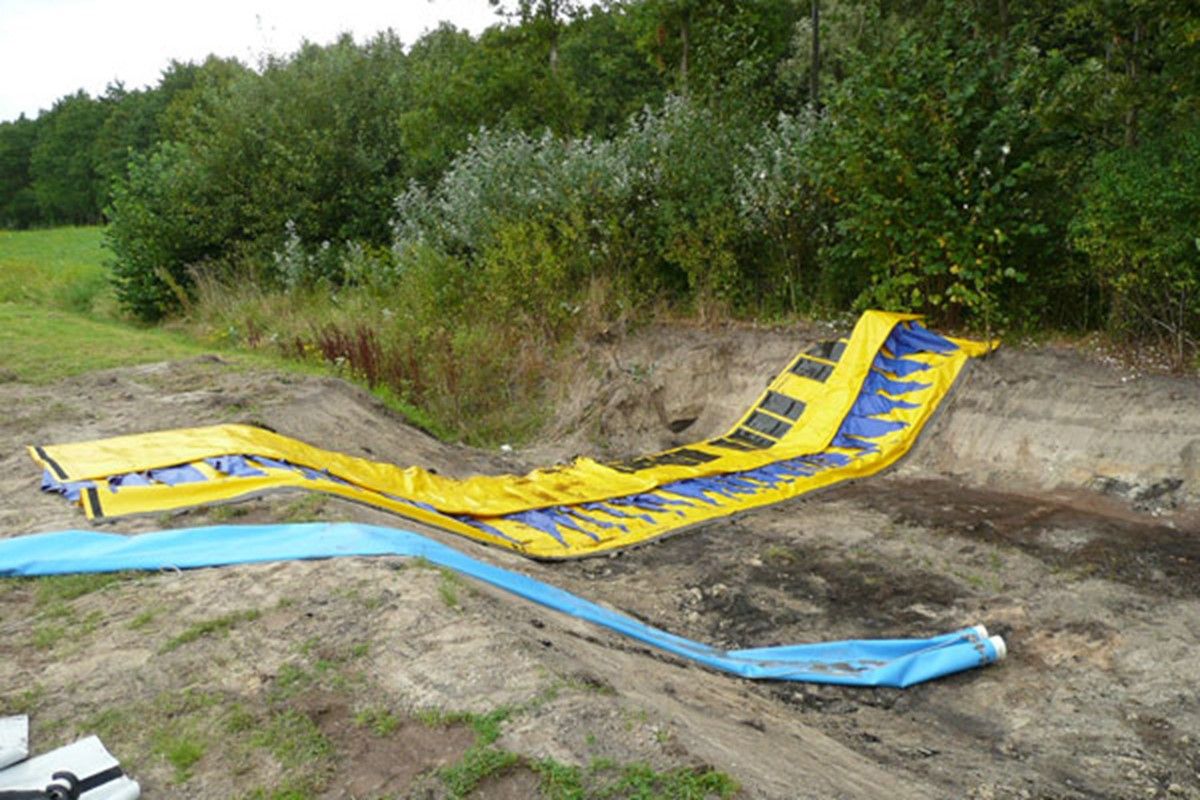 Плотина полностью изготовлены из  плотного лодочного ПФХ, поэтому их легко транспортировать и устанавливать.