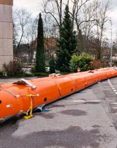Надувные (водные или воздушные) трубчатые геомембраны имеют максимально широкую область применения: в городских и сельских районах, почти без ограничений по рельефу и подстилающему грунту, с самым быстрым временем монтажа и минимальными требованиями к оборудованию. Они очень хороши в качестве закрывающих конструкций для тихой и медленно текущей воды высотой до 1,5 м.