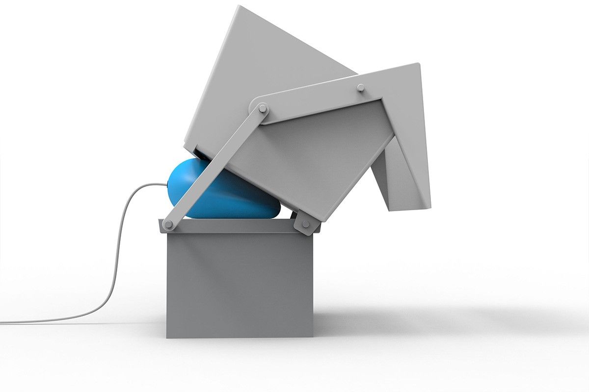 На изображениях показан хороший пример системы наклона, когда контейнер переворачивается через желоб, надувая подъемную подушку.