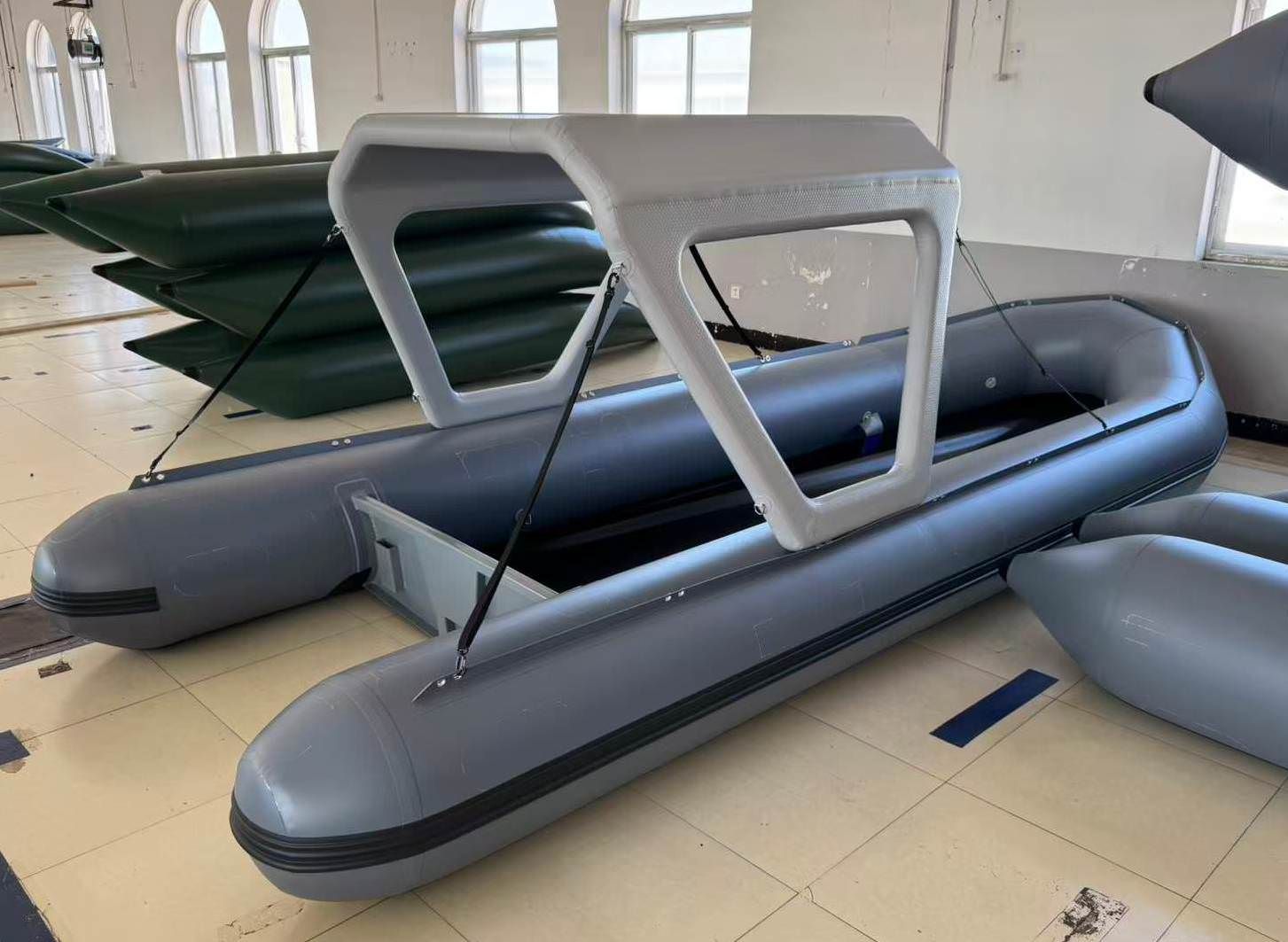 Быстрый монтаж: Легко и быстро устанавливается на лодку благодаря надувным баллонам каркаса. Не требует сложных инструментов или специальных навыков.