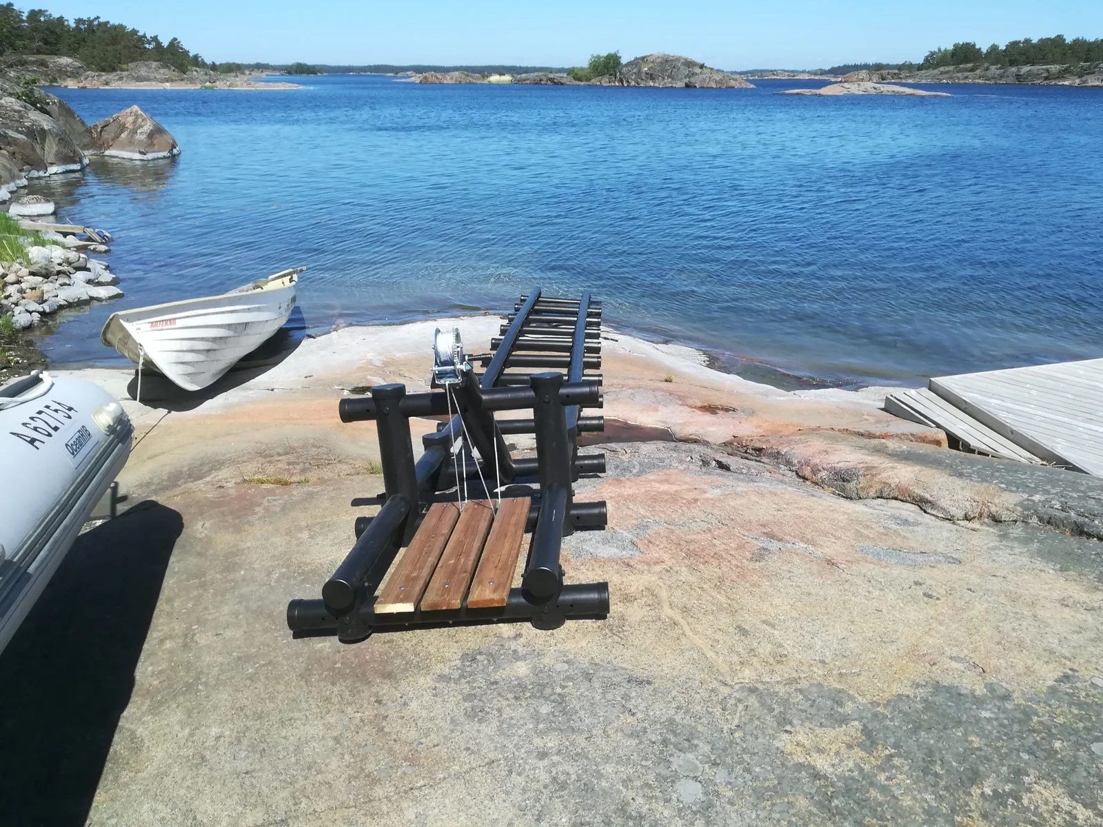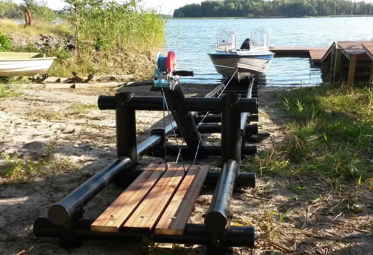 Вы можете использовать Причал M для зимней стоянки лодки. Достаточно снять те секции, которые находятся в воде, – остальная часть остается на берегу как стационарная опора. Лодка не касается земли, днище проветривается, корпус не отсыревает.